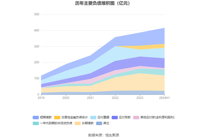 负债重大变化方面,截至2024年上半年末,公司应付票据较上年末增加48.61%,占公司总资产比重上升2.73个百分点;短期借款较上年末增加22.21%,占公司总资产比重上升1.95个百分点;长期借款较上年末减少10.75%,占公司总资产比重下降2.68个百分点;一年内到期的非流动负债较上年末增加27.11%,占公司总资产比重上升0.93个百分点。