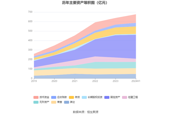 资产重大变化方面,截至2024年上半年末,公司在建工程较上年末减少28.97%,占公司总资产比重下降2.46个百分点;货币资金较上年末增加28.73%,占公司总资产比重上升2.34个百分点;应收账款较上年末增加25.79%,占公司总资产比重上升0.88个百分点;无形资产较上年末减少2.05%,占公司总资产比重下降0.81个百分点。