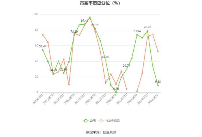 市盈率为负时,不显示当期分位数,会导致折线图中断。