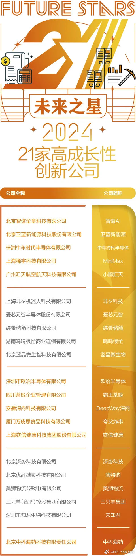 一年一度的“未来之星——年度21家高成长性创新公司”数据,如期发布。