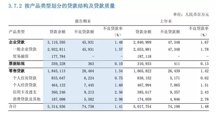 零售业务相比对公,有些失色。不过浦发银行在中报里提到,该行正在优化个人信贷结构,互联网贷款及信用卡现金分期等业务在个人贷款中占比下降,有意降低高风险业务依存度。