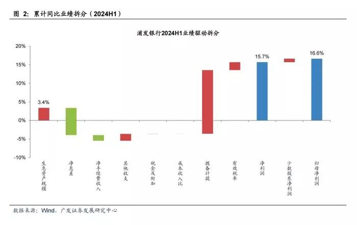 广发证券发表于8月20日的研报显示,拨备计提对浦发银行的业绩形成了明显的正向贡献。2024年上半年,该行拨备前利润同比下滑3.58%。生息资产规模、其他收支、税金及附加、有效税率等因素对业绩的驱动,都远远小于拨备计提的效果。