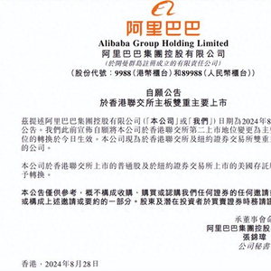 上周,阿里发布公告称,新增香港为主要上市地,将于8月28日在香港联交所主板主要上市,成为在港交所、纽交所双重主要上市的公司,如今顺利完成双重主要上市。