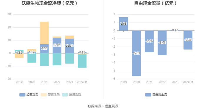 进一步统计发现,2024年上半年公司自由现金流为-2.34亿元,上年同期为-0.44亿元。