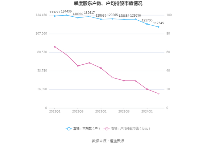 筹码集中度方面,截至2024年上半年末,公司股东总户数为11.75万户,较一季度末下降了4161户,降幅3.42%;户均持股市值由一季度末的20.31万元下降至15.54万元,降幅为23.49%。