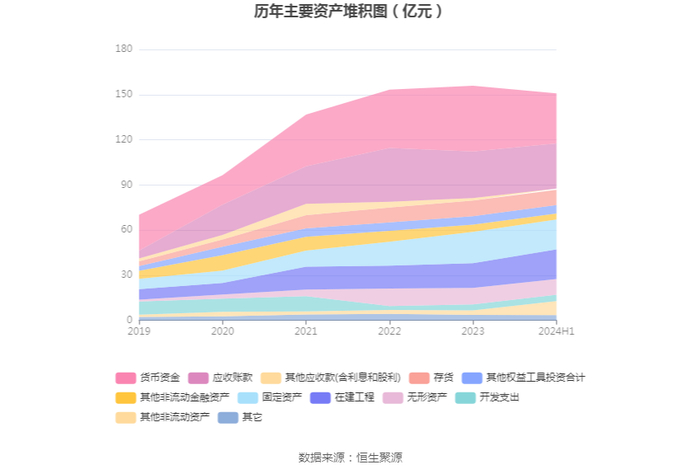 资产重大变化方面,截至2024年上半年末,公司货币资金较上年末减少23.59%,占公司总资产比重下降5.90个百分点;其他非流动资产较上年末增加202.52%,占公司总资产比重上升4.20个百分点;在建工程较上年末增加19.87%,占公司总资产比重上升2.51个百分点;其他应收款(含利息和股利)较上年末减少48.31%,占公司总资产比重下降0.49个百分点。