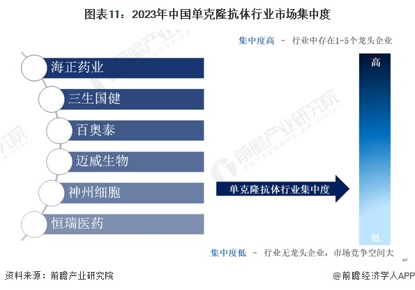 受益于行业的迅速发展,我国单克隆抗体行业研发企业不断增多,但行业尚未出现龙头企业。综合来看,中国单克隆抗体行业市场集中度处于较低水平。