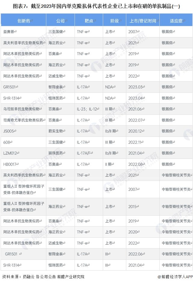 随着国家对创新药及生物技术的支持,近年我国单抗药物研发如火如荼,研发产品种类及参与企业不断增多。单克隆抗体研发企业业务布局来看,目前三生国健、海正药业、百奥泰、迈威生物等企业均已有产品上市。适应症主要包括银屑病、中轴型脊柱关节炎、特应性皮炎、哮喘等。