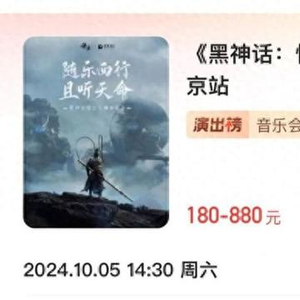 猫眼平台显示,《黑神话:悟空》线下音乐会的票价定在180-880区间,一共有19首曲目,演出时长不小于90分钟。《黑神话:悟空》的音乐总监翟锦彦为游戏创作了 90 多首风格迥异的音乐作品,包括激昂的开场主题曲《称王称圣任纵横》,优美的插曲《戒网》,还有《往生咒》的赛博版 Rap。