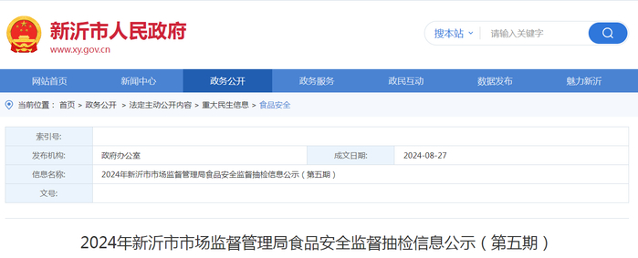 2024年江苏省新沂市市场监督管理局食品安全监督抽检信息公示(第五期)