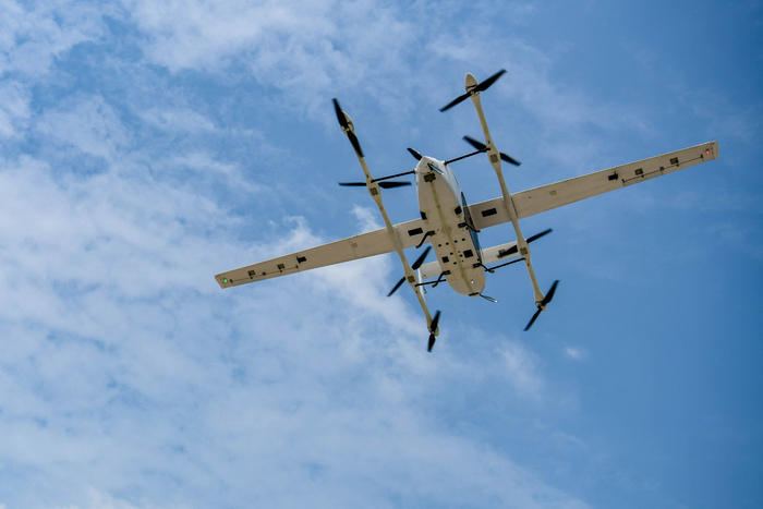 头图为丰舟90无人机正在送货,劳动报记者颜筱依摄