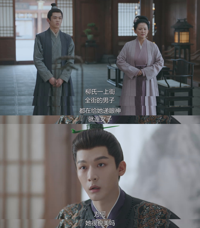 而《柳舟记》第一集,当崔行舟从手下那里得知柳眠棠很受欢迎、她一上街男人女人都多看她两眼时,崔行舟不解地问:“为何?她很貌美吗?”