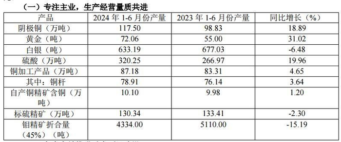 从上表可以看出:江西铜业上半年的阴极铜产量同比增18.89%,黄金产量同比增31.02%。