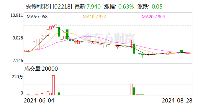 官网资料显示,安德利创建于1996年,是山东安德利集团的支柱企业,世界浓缩果汁主要生产与供应商之一,是农业产业化国家重点龙头企业、全国农产品加工业出口示范企业、中国食品工业出口百强企业,生产的浓缩苹果清汁被评为“中国名牌产品”。公司先后在山东、陕西、江苏、辽宁、山西、四川、新疆等省区建有10个浓缩果汁加工厂,拥有19条世界先进的浓缩果汁生产线,设计年加工果品能力100万吨,公司产品以浓缩果汁、果糖为主,还包括果浆、鲜榨果汁(NFC果汁)、香精等产品,产品的出口比例约占80%。2003年4月,公司在香港上市;2020年9月,在上海证券交易所A股上市,成为国内第一家饮料类,也是烟台市第一家“A+H”双上市企业。据悉,安德利的客户包括可口可乐、百事可乐、娃哈哈、统一等众多国内外知名品牌。