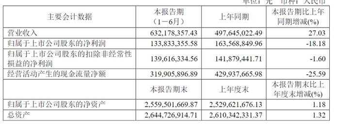 就在8月27日,安德利披露2024年半年度报告。2024年上半年,公司实现营业收入6.32亿元,同比增长27.03%,但与此同时营业成本增长了35.1%;归母净利润1.34亿元,同比下降18.18%;扣非净利润1.4亿元,同比下降1.60%,出现了增收不增利的情况。经营活动产生的现金流量净额为3.2亿元,同比下降25.59%;报告期内,安德利基本每股收益为0.38元,加权平均净资产收益率为5.18%。其中,礼泉安德利上半年净利润超过1000万元,总资产达2.56亿元。安德利称,近年来公司外销收入占比约60%-70%,在国内外主要市场均具有较高的市场占有率。