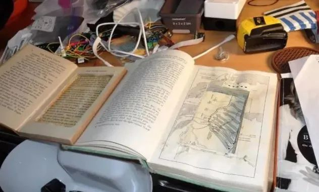 ·摩根夫妇家中被掏空的用来藏手机的书籍。