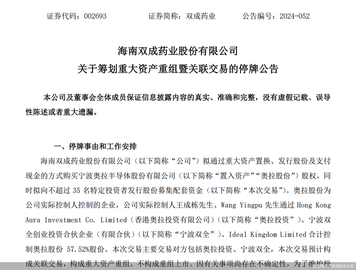 股价提前大涨!双成药业要并购实控人旗下半导体公司,标的曾IPO未果