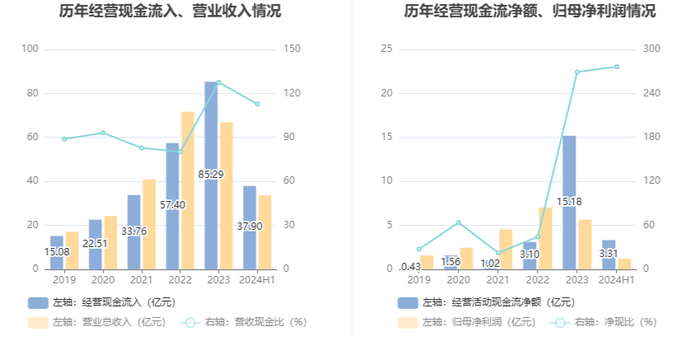 2024年上半年,公司营业收入现金比为112.75%,净现比为276.38%。