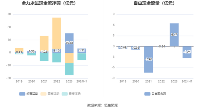 进一步统计发现,2024年上半年公司自由现金流为-3.25亿元,上年同期为5.00亿元。