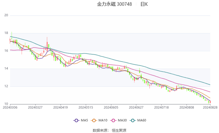 金力永磁:2024年上半年净利润同比下降64.02% 拟10派0.8元