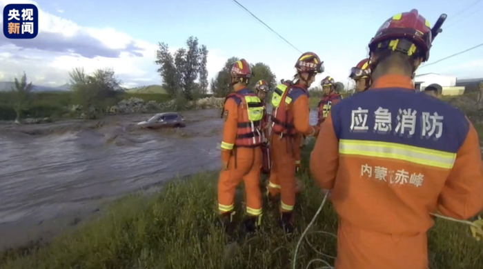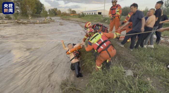 太惊险!男子被困河道中央,消防员“飞”了出去……