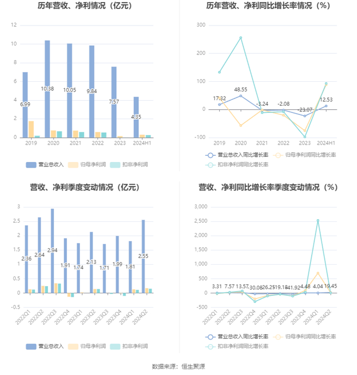 根据半年报,公司第二季度实现营业总收入2.55亿元,同比增长19.45%,环比增长40.90%;归母净利润1709.31万元,同比增长19.83%,环比增长33.43%;扣非净利润1455.14万元,同比增长6.07%,环比增长31.83%。