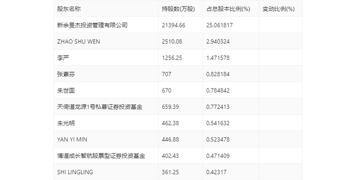 半年报显示,2024年上半年末的公司十大流通股东中,新进股东为李严、YAN YI MIN、博道成长智航股票型证券投资基金,取代了一季度末的李忠琴、朱军、杨迦迤。在具体持股比例上,天倚道龙源1号私募证券投资基金持股有所上升,张素芬持股有所下降。