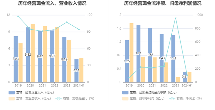 2024年上半年,公司营业收入现金比为94.46%,净现比为103.41%。