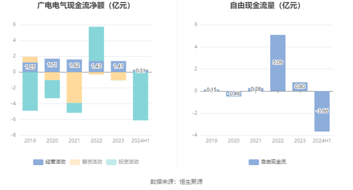 进一步统计发现,2024年上半年公司自由现金流为-3.66亿元,上年同期为-1.70亿元。