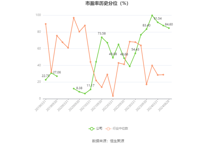 市盈率为负时,不显示当期分位数,会导致折线图中断。