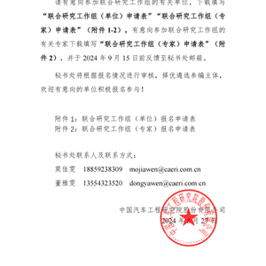 请有意向参加联合研究工作组的有关单位,下载填写“联合研究工作组(单位)申请表”“联合研究工作组(专家)申请表”(附件1-2),有意向参加联合研究工作组的有关专家下载填写“联合研究工作组(专家)申请表”(附件2),并于2024年9月15日前反馈至秘书处邮箱。