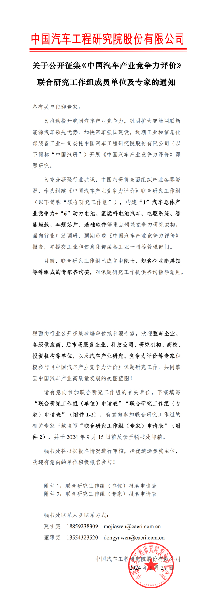 关于公开征集《中国汽车产业竞争力评价》联合研究工作组成员单位及专家的通知