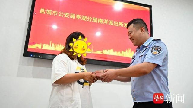 8月26日下午,盐城市公安局亭湖分局南洋派出所举行发赃仪式,市民范女士(化名)等人从民警手中领回8.7万元被骗钱款。