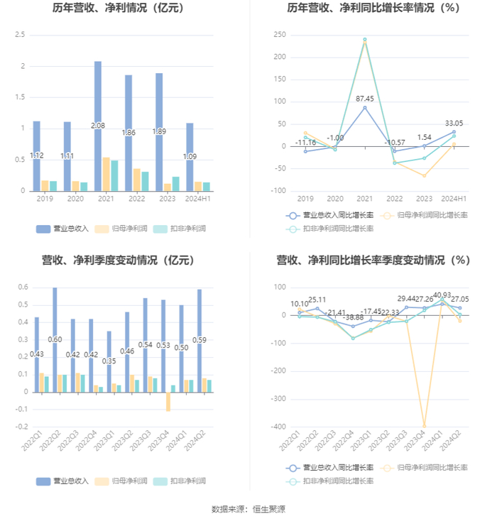 根据半年报,公司第二季度实现营业总收入5889.47万元,同比增长27.05%,环比增长18.21%;归母净利润772.63万元,同比下降19.69%,环比增长3.53%;扣非净利润748.3万元,同比增长3.58%,环比增长12.40%。