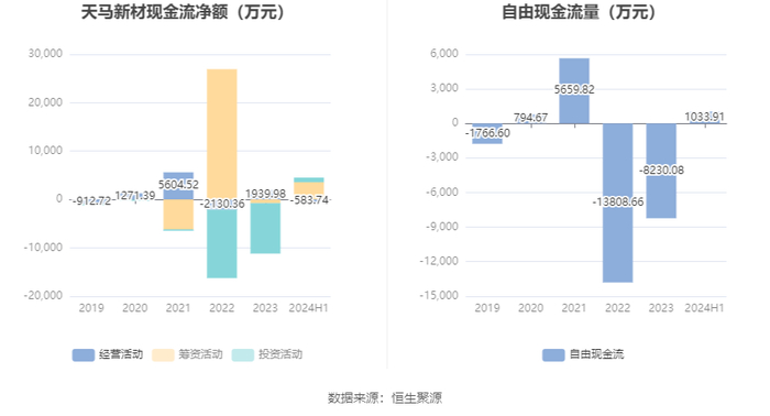进一步统计发现,2024年上半年公司自由现金流为1033.91万元,上年同期为-4604.73万元。