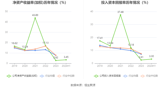 数据显示,2024年上半年公司加权平均净资产收益率为3.45%,较上年同期增长0.21个百分点;公司2024年上半年投入资本回报率为3.30%,较上年同期增长0.14个百分点。