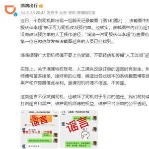 平台可人工操纵改派预约单?滴滴出行辟谣
