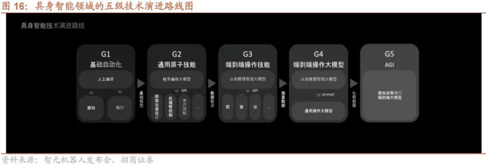 本次发布会是自去年 8 月中旬发布远征 A1 以来,智元机器人的再次亮相。在接近一年的“沉寂”后,智元在加速量产和商业化的进程中有了亮点的表现。本次发布会上,智元机器人不仅首次定义具身智能领域的五级技术演进路线图,而且公布了最新商业化进展:团队面向量产做了大量的正向设计分析、系统方案重构、核心部件自研;远征系列产品规模量产正在进行,接收到来自制造业、交互服务行业等不同客户的大量订单,整个团队都在加班加点准备批量交付。研发上,和均普智能、数字华夏、科大讯飞、北电数智、软通动力等公司合作,面向不同场景推出商用落地解决方案。同时,公司也与上海人工智能实验室和中国科学院软件研究所等科研机构合作,进行多模态大模型和机器人操作系统的技术研发。截至目前,这家 2023 年 2 月才成立的公司已完成天使轮、A 轮、A1轮、A1+轮、A2 轮、A3 轮、A4 轮等多轮融资,估值超过 70 亿。