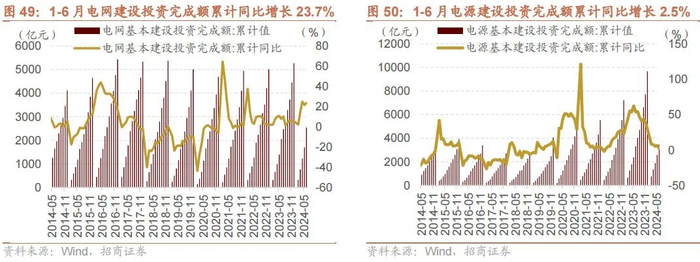 其中,电力投资中,电网投资增速较高,6 月的三个月滚动增速达到了 23%,超过了电源投资增速。
