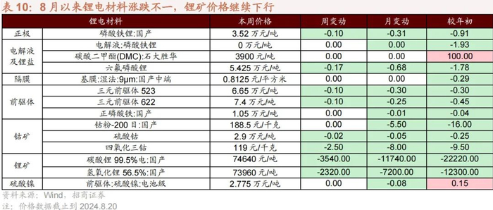 ⚫ 电动车:7 月国产新能源销量整体下降,AITO 问界、零跑、理想同比大涨;8 月锂电材料价格整体有所下降