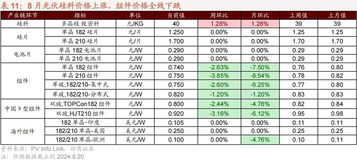 【中观数据跟踪】AI+:7月全球AI产品(包含Web 跟 APP)榜排名前十中,百度搜索 AI智能回答涨幅最高,高达61.22%;Character AI跌幅最高,达30.72%。国内AI产品榜排名前十家访问量有7家上涨。从手机端AI应用看,6月全球下载量(不包括国内安卓)排名前四为ChatGPT、Remini、Canva和豆包,国内下载量(不包括国内安卓)排名前四为豆包、文心一言、Kimi和星野。电动车:7月国产新能源销量整体下降,AITO问界、零跑、理想同比大涨;8月锂电材料价格整体有所下降。风电:风电新增装机5月同比增速上升,出口环比下降至37.38%。绿电:7月太阳能发电同比增速缩小,风电发电同比增幅收窄。数据显示,7月太阳能发电量环比上行2.19%,同比增速16.43%,较前一月同比增速缩小1.66个百分点。集成电路:6月我国半导体销量同比持续增长,智能手机出货量同比增长14.30%,7月集成电路产量同比增长26.9%。白酒:7月茅五泸高端白酒价格均值同比有所下滑,7月酒类线上销售额同比增长4.12%。