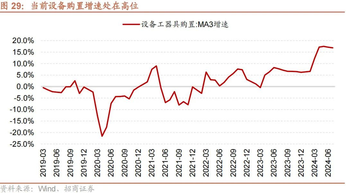 设备更新方面,今年3月以来,我国设备工器具购置三个月滚动增速始终保持在10%以上,5月最高达到了18%,设备更新拉动作用强。