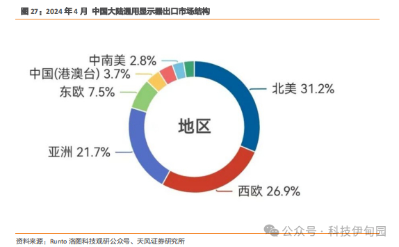 2024年4月中国大陆显示器出口同比增长,北美、西欧地区涨幅明显。根据洛图科技(RUNTO)发布的《中国大陆显示器出口市场月度快报(China Monitor Export Market Monthly Express)》数据显示,2024年4月,中国大陆通用显示器的出口量为842万台,同比增长15%;出口额为65.9亿元,同比增长24%,按美元计,出口额为9.3亿美元,同比增长20%。截至现在,前四个月的出口总量为3153.8万台,同比增长15%;出口额为248.5亿元,同比增长26%;平均价格为788元,同比增长9%。分区域来看,2024年4月,中国大陆通用显示器的出口量增长的主要地区是北美、西欧和亚洲,增幅均超15%;中东非地区口量同比下降25%以上。