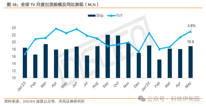 全球MNT面板半年度出货:三大因素推动上半年同比增长10%,下半年下滑风险加剧。回顾24年上半年,MNT面板市场表现亮眼。首先,面板价格上涨导致原本谨慎备货的品牌渠道在可预见性价格上涨的情况下开始拉货;其次,航运订舱问题导致品牌和渠道为确保出货顺利,备货节奏前移;最后,海外商用市场复苏拉动面板需求增长。据DISCIEN(迪显)《全球MNT面板PSI月度数据报告》统计,24H1全球LCD MNT面板出货78.1M,同比增长10%,在分季度表现上,Q2延续上季度同比增长趋势,出货41.2M,同比增长7%。但考虑上半年积极的面板采购在终端未能有效去化,品牌与渠道库存有所增长,一定程度上透支了下半年的需求。且随着TV需求下滑,全球高世代线LCD稼动下修后,中大尺寸应用产能可调配空间加大。不可否认,面板厂将持续实行按需生产策略。在下半年需求下滑大背景下,面板厂改善经营性的诉求依然强烈,如何平衡出货规模和营利性将成为面板厂的重要议题,面板价格也将迎来更严峻的挑战。综合来看,短期内需求仍有一定保障,可给予出货一定支撑,但整体下半年,尤其四季度面板需求下滑风险加剧。