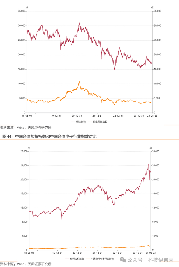 8月23日美股道琼斯工业平均指数为41,175.08,本周(8/19~8/23)涨幅为1.3%,8月23日纳斯达克综合指数为17,877.79,本周(8/19~8/23)涨幅为1.4%。8月23日恒生指数为17,612.10,本周(8/19~8/23)涨幅为1.0%,8月23日恒生科技指数为3,468.94,本周(8/19~8/23)跌幅为0.3%,8月23日中国台湾加权指数为22,158.05,本周(8/19~8/23)跌幅为0.9%,8月23日中国台湾电子行业指数为1,186.95,本周(8/19~8/23)跌幅为0.9%。