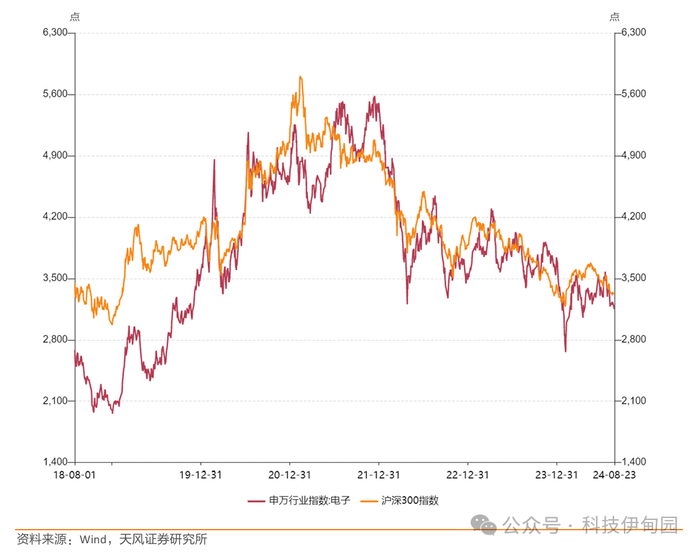 8月23日申万电子行业指数为3,149.13,本周(8/19~8/23)跌幅为2.9%,8月23日沪深300指数为3,327.19,本周(8/19~8/23)跌幅为0.6%,电子行业整体跑输大盘。8月23日申万电子行业市盈率为42.16,8月23日沪深300市盈率为12.48。