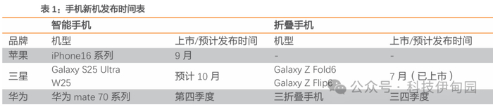 观点:1)折叠屏手机方面:2024 年 Q2 中国折叠屏手机销量达 262 万部,同比大增 125%,华为份额第一,vivo 和 OPPO 紧追其后,看好折叠屏相关产业链。小米 MIX Flip 小折叠手机销售火热,其32% 的用户来自于 iPhone 用户的换机,其中 55% 是女性用户。华为 nova Flip 小折叠屏手机上市 72 小时销量突破 45 万台,同比 PocketS提升 85%,小折叠品类华为份额突破 70%。9 月份将迎来华为三折叠手机,三星也会推出全新折叠屏旗舰手机 W25。2)手机海外市场:二季度,非洲智能手机市场在逆势环境中仍小幅增长6%,达到 1780 万台。2024 年第二季度,非洲外部经济活动脆弱,使得前三个季度连续两位数的强劲复苏有所放缓。 非洲智能手机市场的不同趋势导致北非市场蓬勃发展而撒哈拉以南的非洲则面临挑战。3)苹果方面,据曝 iPhone 16 的相机升级明显,而iPhone 16 Pro Max 的 1.15mm 超窄下巴将刷新纪录。iPhone 16的超广角摄像头将从之前的 f/2.4 光圈升级到 f/2.2,首次支持微距摄影,新款 iPhone 还将引入电容式“拍摄按钮”,提升用户的拍摄体验。生产端,苹果产能回流中国拉动国内苹果产业链需求上涨。目前苹果有超 95%的产品仍在中国制造组装。随着 iPhone16 系列新品进入量产冲刺阶段,富士康时薪涨至最高28元/小时,立讯精密昆山园区上调200元入职奖励。4)新机方面:我们梳理了三-四季度主流品牌新机发布的可能时点,近期可关注苹果 iPhone16 系列和华为在九月即将发布的全球首款三折手机。