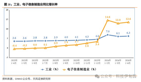 工信部:2024年1-4月我国智能手机产量3.67亿台,同比增长14.1%。5月30日消息,据工信部官方消息,2024年1-4月我国规上电子信息制造业生产稳步增长,出口恢复向好,效益持续改善,投资保持较快增长,行业整体增势明显。1-4月,我国规模以上电子信息制造业增加值同比增长13.6%,增速分别比同期工业、高技术制造业高7.3个和5.2个百分点。4月份,规模以上电子信息制造业增加值同比增长15.6%。1-4月份,手机产量4.96亿台,同比增长12.6%,其中智能手机产量3.67亿台,同比增长14.1%;微型计算机设备产量1.0亿台,同比增长3.4%;集成电路产量1354亿块,同比增长37.2%。