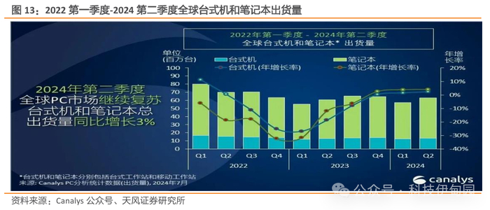 1.3.2. PC:笔电平均内存实现同比增长,看好AI PC渗透率提升拉动产业链复苏