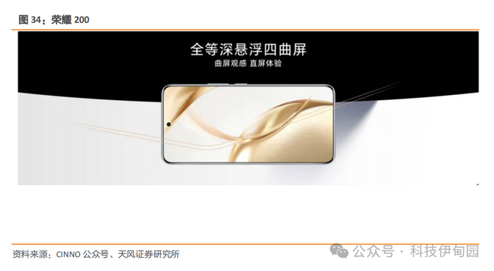 天马供屏荣耀200系列发布:搭载6.78吋/6.7吋OLED屏,售价2699元起。5月27日消息,荣耀发布了荣耀200系列手机,新机号称“雅顾光影写真大师”,包含标准版和Pro版两款机型,售价2699元起。荣耀200标准版方面,该机采用全等深悬浮四曲屏幕、立边中框设计,搭载6.7英寸2664×1200 OLED等深四曲屏,支持120Hz刷新率、3840Hz高频PWM调光,局部峰值亮度4000nit,支持10.7亿色彩显示,支持类自然光护眼、助眠显示技术,通过德国莱茵TÜV无频闪认证。